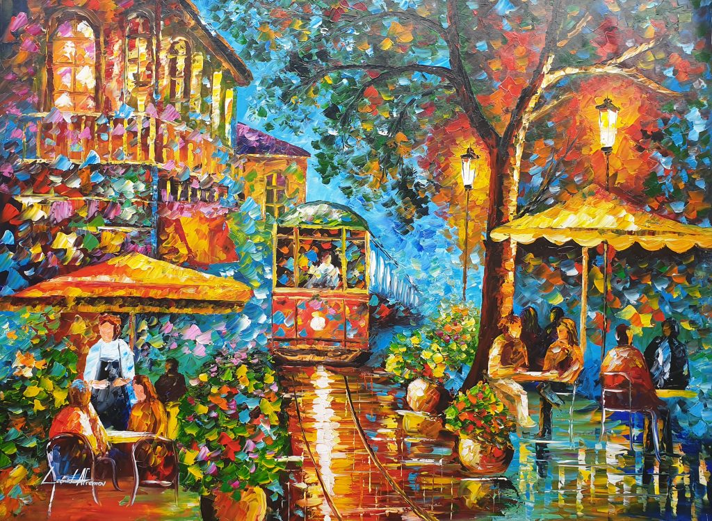 Leonid Afremov merupakan pelukis asal Amerika. Dia mulai bekerja secara eksklusif hanya dengan cat minyak dan pisau palet sehingga mengukir identitas artistiknya yang unik.