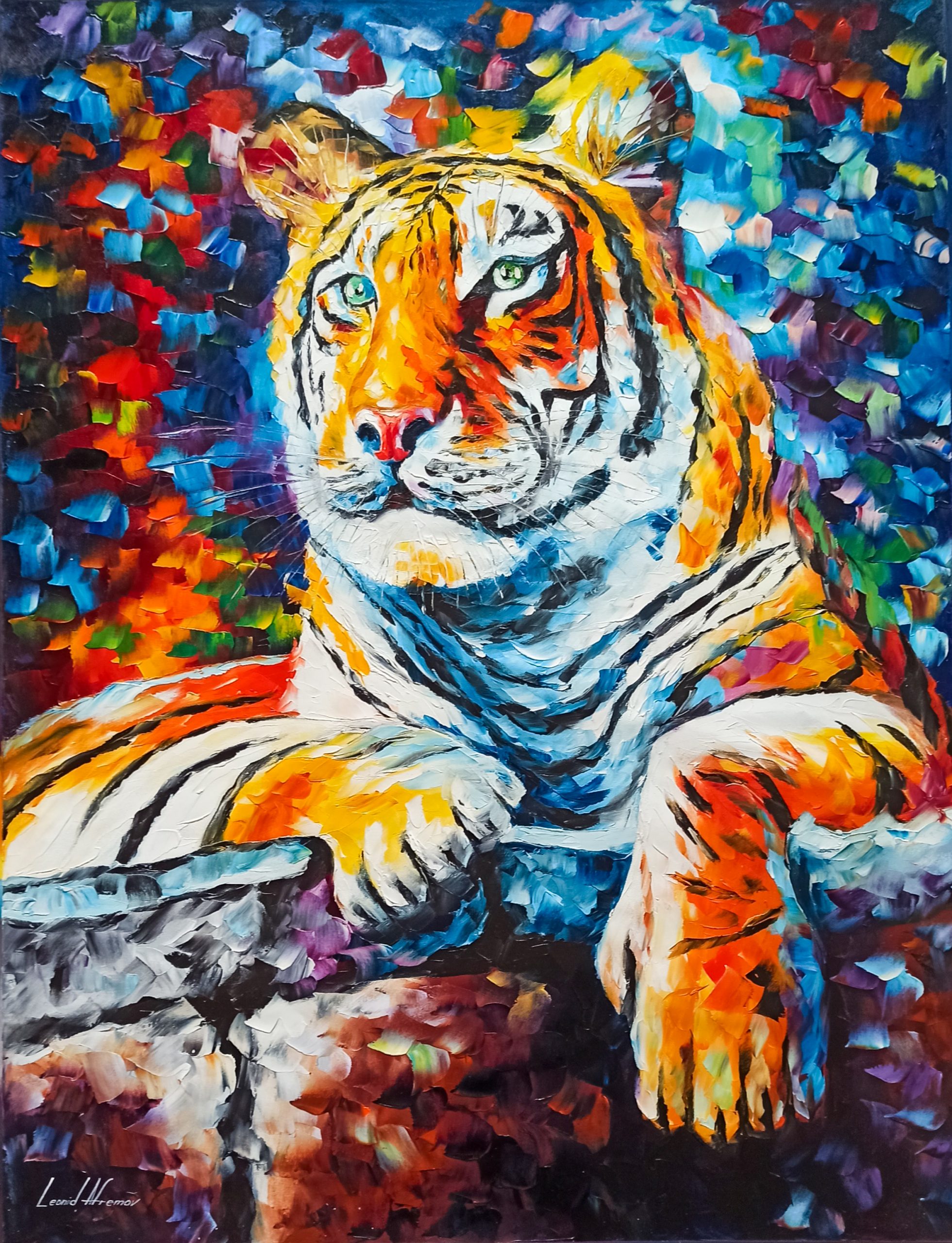 Harimau Siberia merupakan hewan yang kuat dan cantik, di balik keganasan dan kekuatannya sebagai raja sesungguhnya hutan dan dataran siberia, terpancar juga kecantikan dan juga elegansi. Lukisan karya Leonid kali ini menampilkan 2 karakteristik tersebut secara nyata, diharapkan siapapun yang memiliki lukisan ini dapat memiliki ketagguhan dan keanggunan dalam menjalani kehidupan layaknya sosok kuat sang harimau.