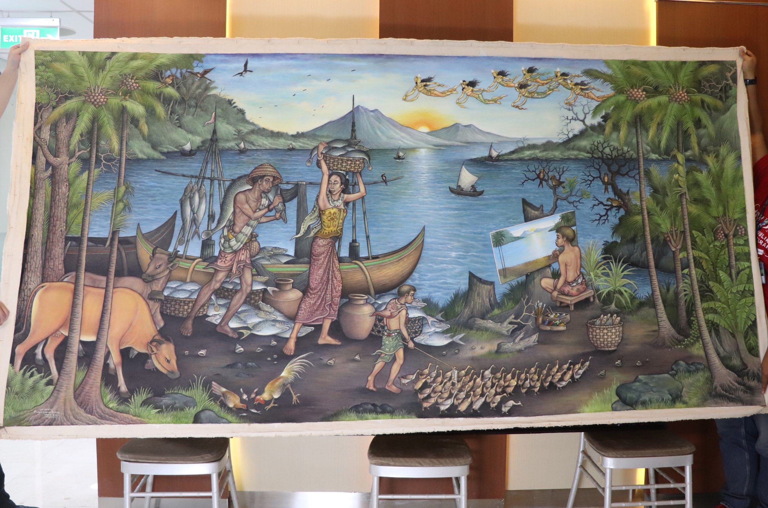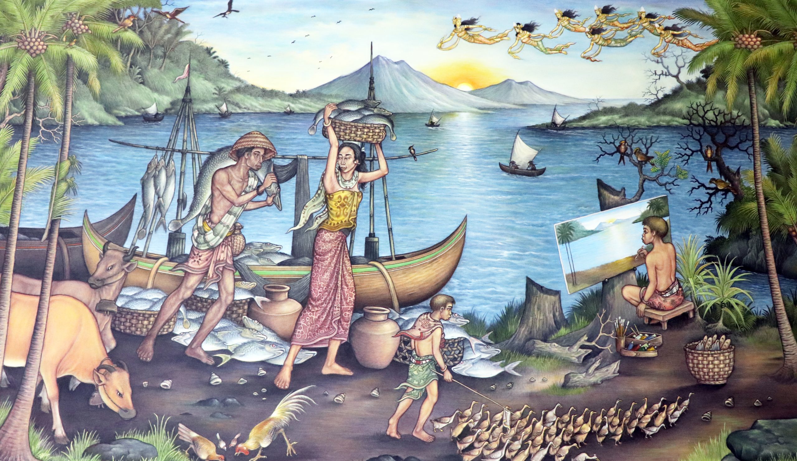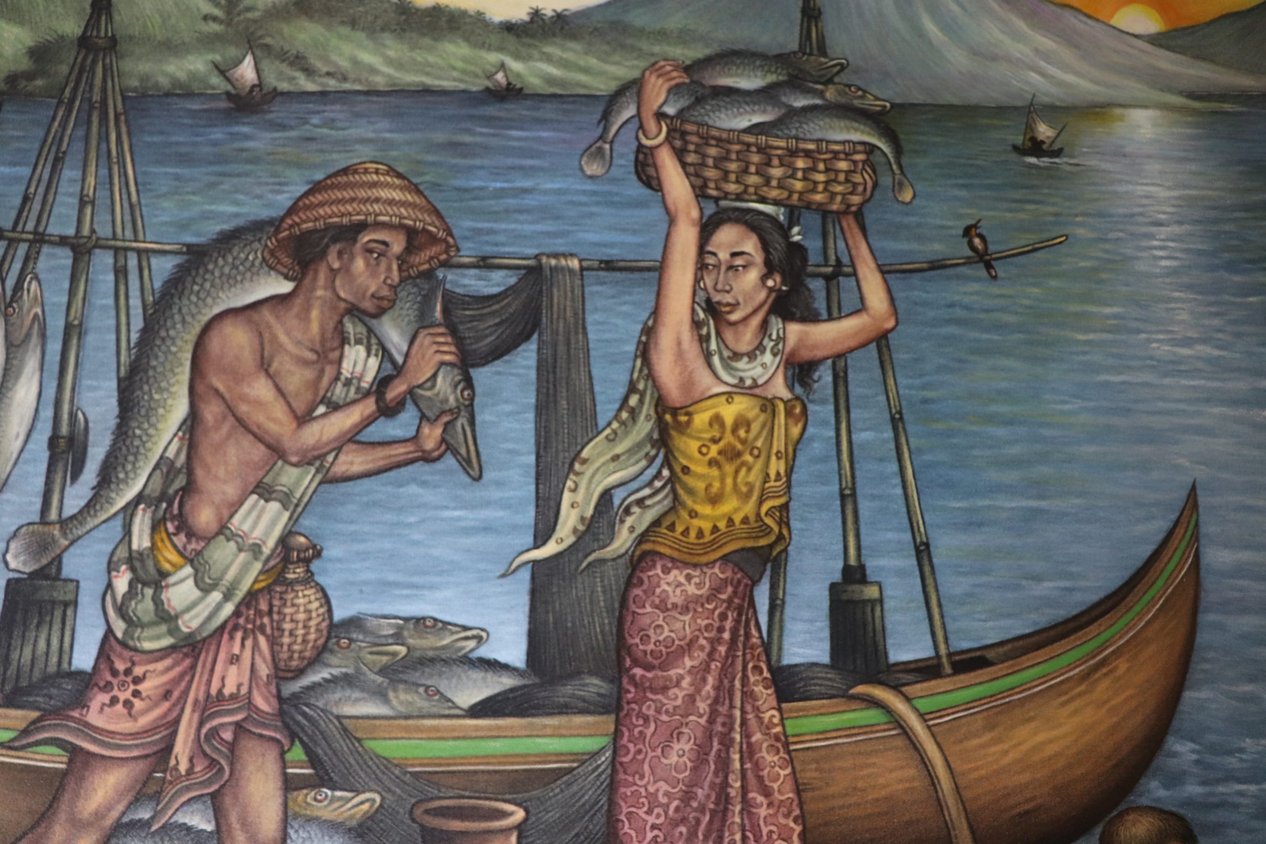 Lautan yang membentang nan luas sejauh mata memandang dikelilingi bukit dibibir pantai, langit biru dan kicauan burung yang terbang mengitari lautan, Matahari terbit di kejauhan menepiskan dinginnya angin laut yang dirasakan para nelayan yang menepi dengan hasil tangkapannya yang mana telah siap dibawa oleh sanak keluarga.